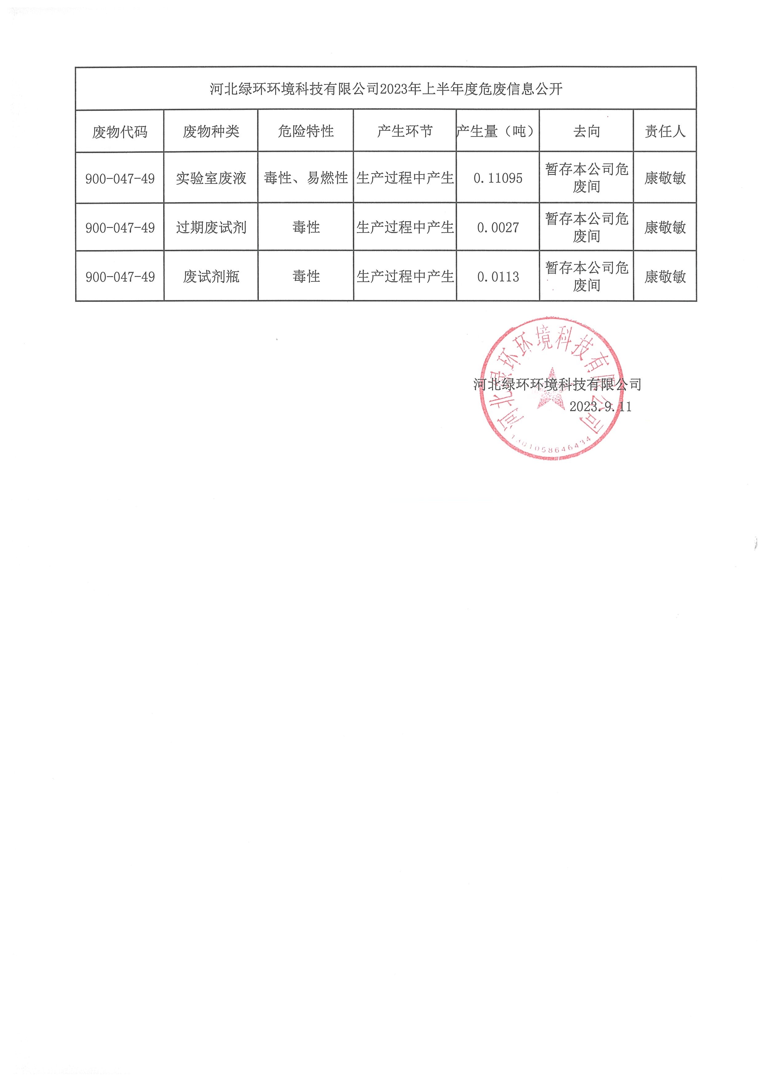 下一篇:河北綠環(huán)環(huán)境科技有限公司2023年年度危廢信息公開(kāi)
